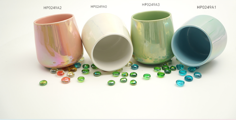 6oz 7oz Ceramic Candle Holder with Electroplate Process