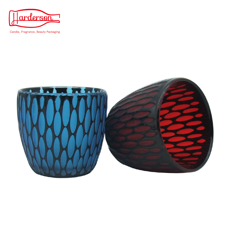 This elegant round glass jar is by handmade with high-quality, retro style. Colored orange glass with hand-engraved pattern. This luxury glass candle jar can warm your family and enhance your life quality.