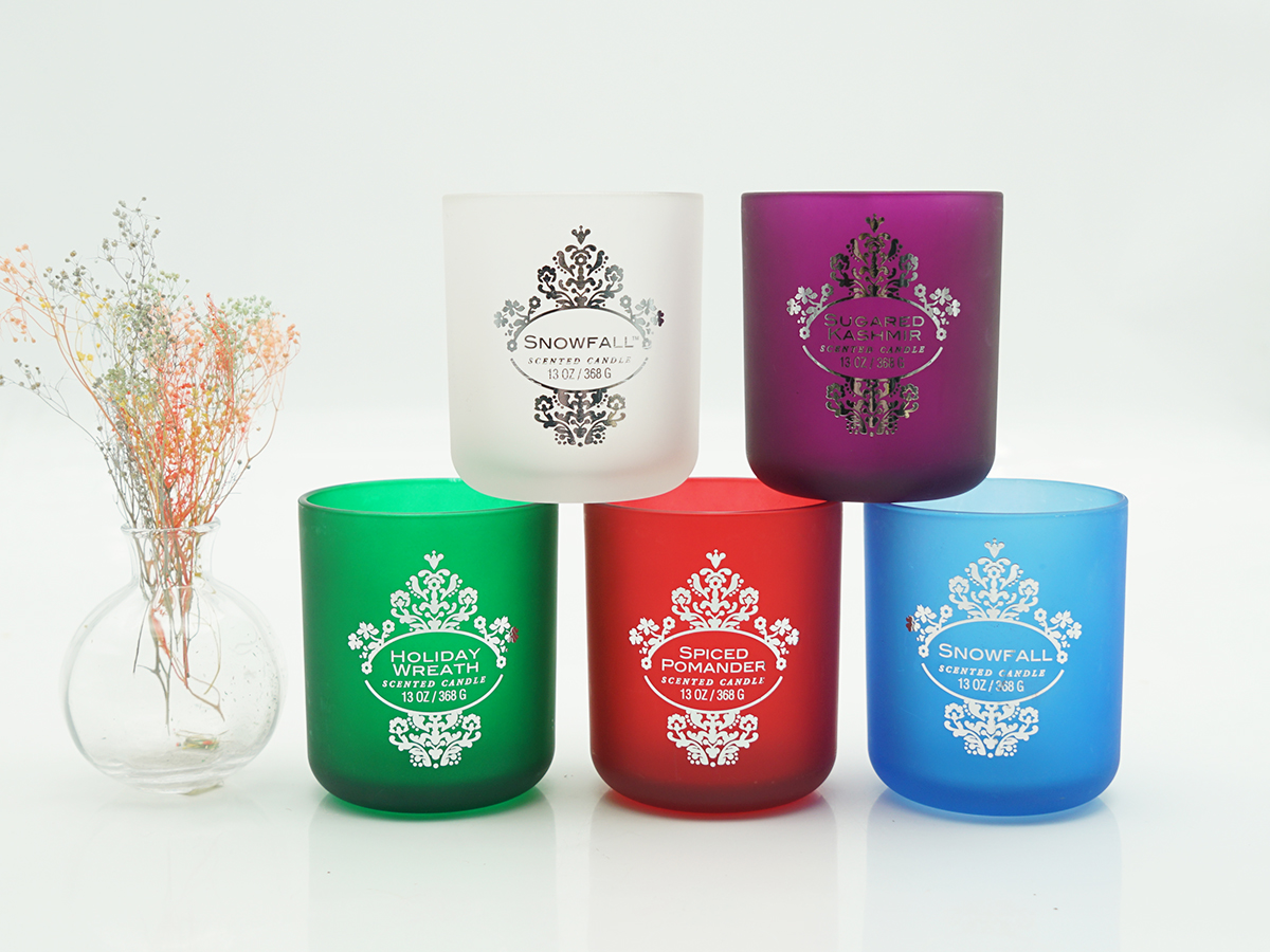 13oz Frosted Glass Candle Jars with Hot Stamp Logo