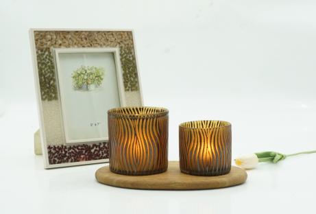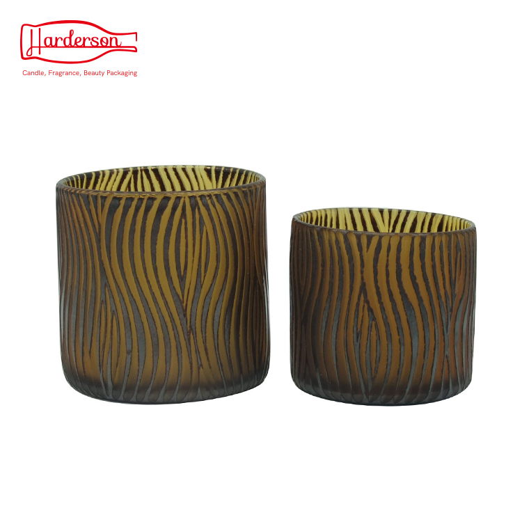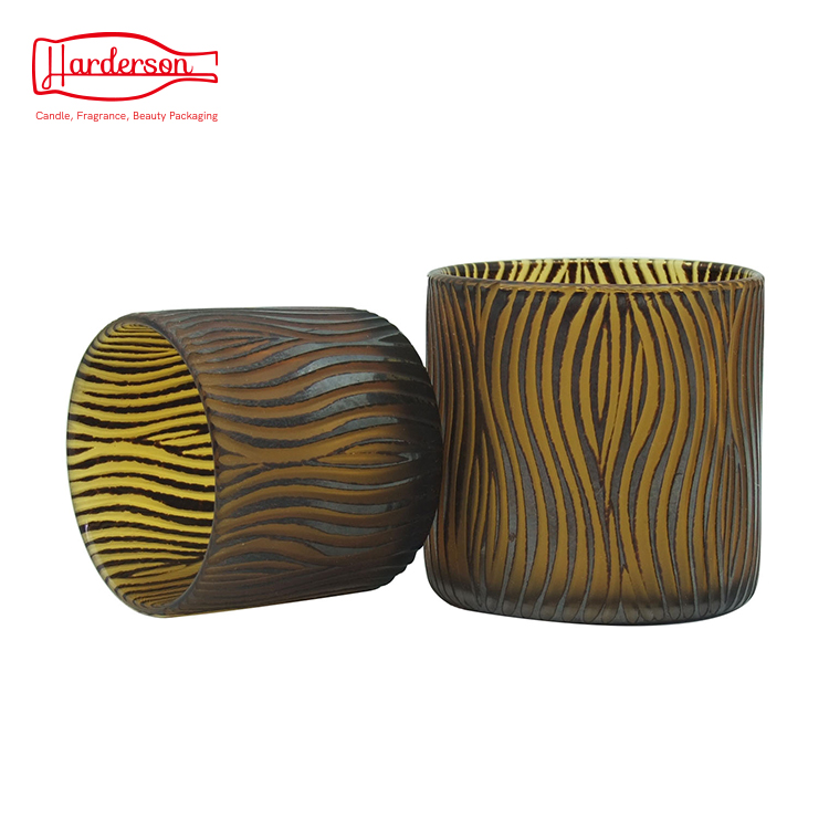 This elegant round glass jar is by handmade with high-quality, retro style. Colored orange glass with chocolate sea salty decoration and hand-engraved pattern. This luxury glass candle jar can add spice to your life and enhance your life quality.