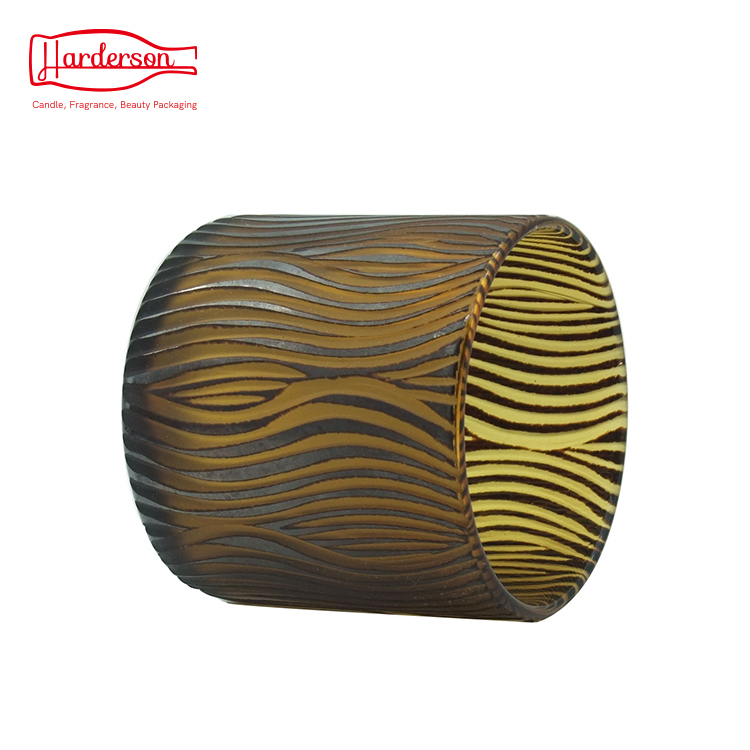 This elegant round glass jar is by handmade with high-quality, retro style. Colored orange glass with chocolate sea salty decoration and hand-engraved pattern. This luxury glass candle jar can add spice to your life and enhance your life quality.