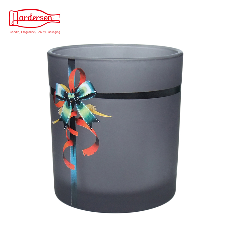 8.3oz festive ribbon decal candle jars