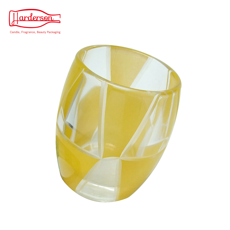This elegant colored glass round candle jar is high-quality, thick and strong. modern style, by painting and engraving technology,beautiful and generous appearance ,not easy out of date, you can also use them as wax filled candle jars,it can be washed and reused when candles burn out, as a storage jar,with this beautiful glass candle jar, you can add the warm and happy feel to birthdays, weddings, special events and home decorations.