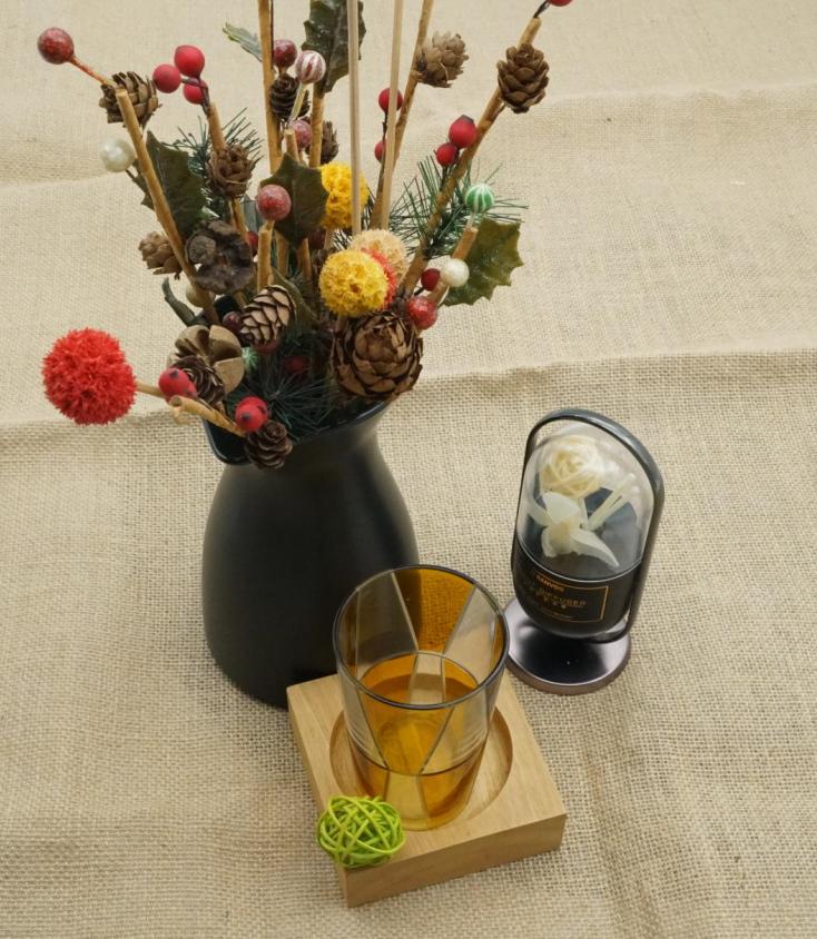 This gorgeous glass jar matches with any home décor furniture, for example, dining table, cooking bench, dressing table, tea table, coffee bar and bookshelves. It is also easy going with restaurants and hotels. When the candle is lighted, the room is filled with aroma!