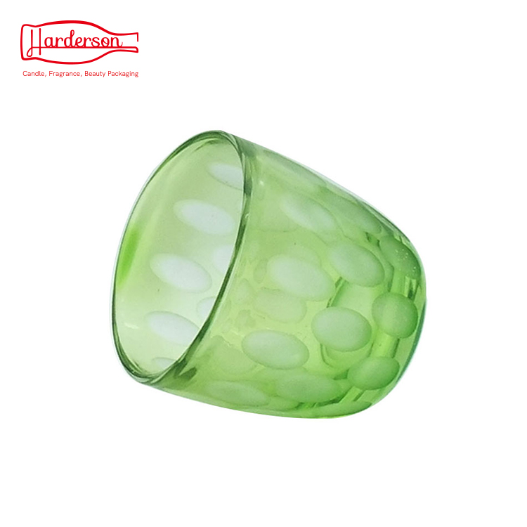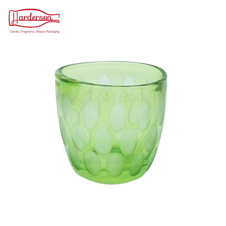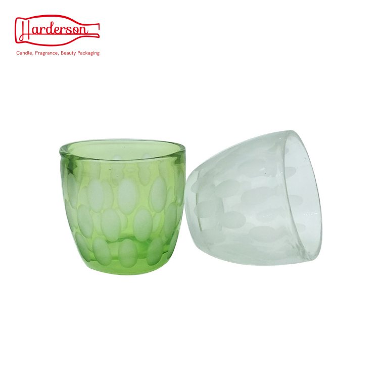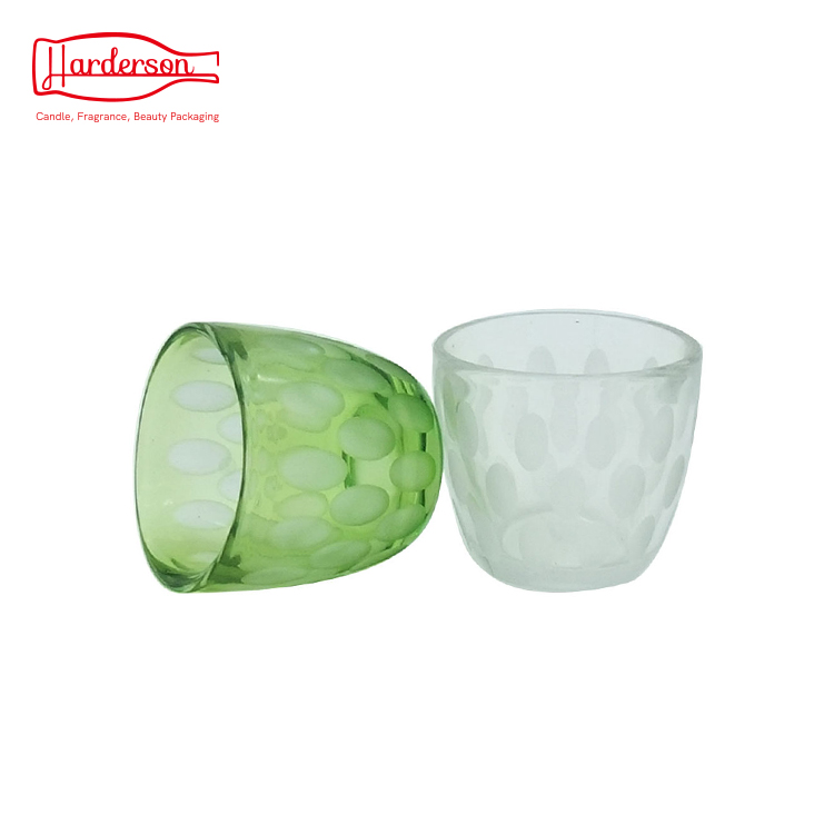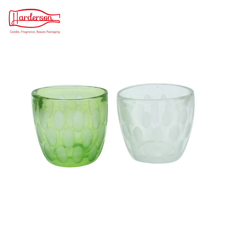This gorgeous round glass jar is by handmade with high-quality, bright and vivid. Colored glass with lovely hand-engraved oval pattern. This luxury glass candle jar can warm your family and enhance your life quality.