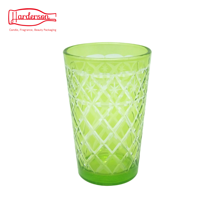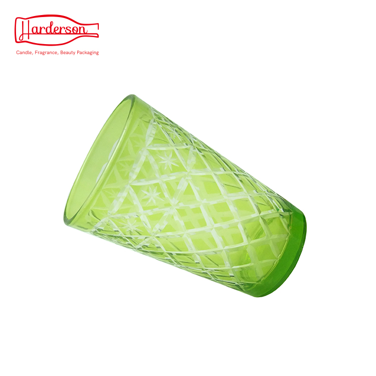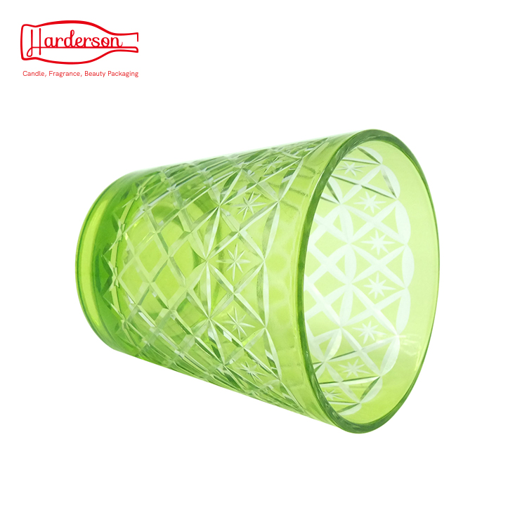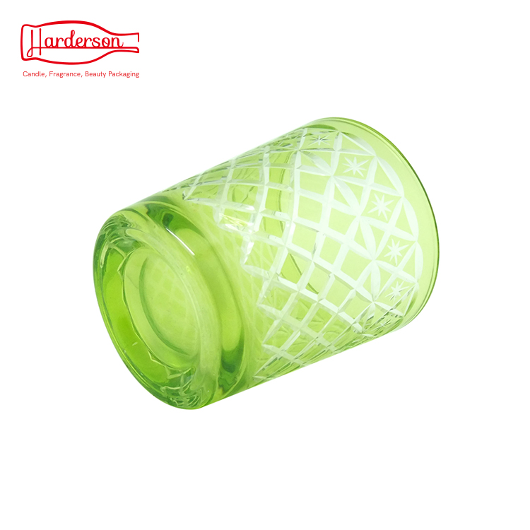 This fresh green colored glass round candle jar is high-quality, thick and strong.sturdy and durable, modern style, by painting spray and hand-engraved technology,you can see the exquisite and elegant appearance,not easy out of date, you can also use them as wax filled candle jars,it can be washed and reused when candles burn out, as a storage jar,with this beautiful glass candle jar decorate your home.