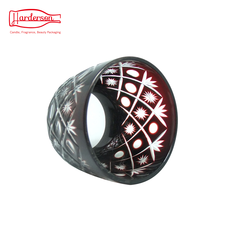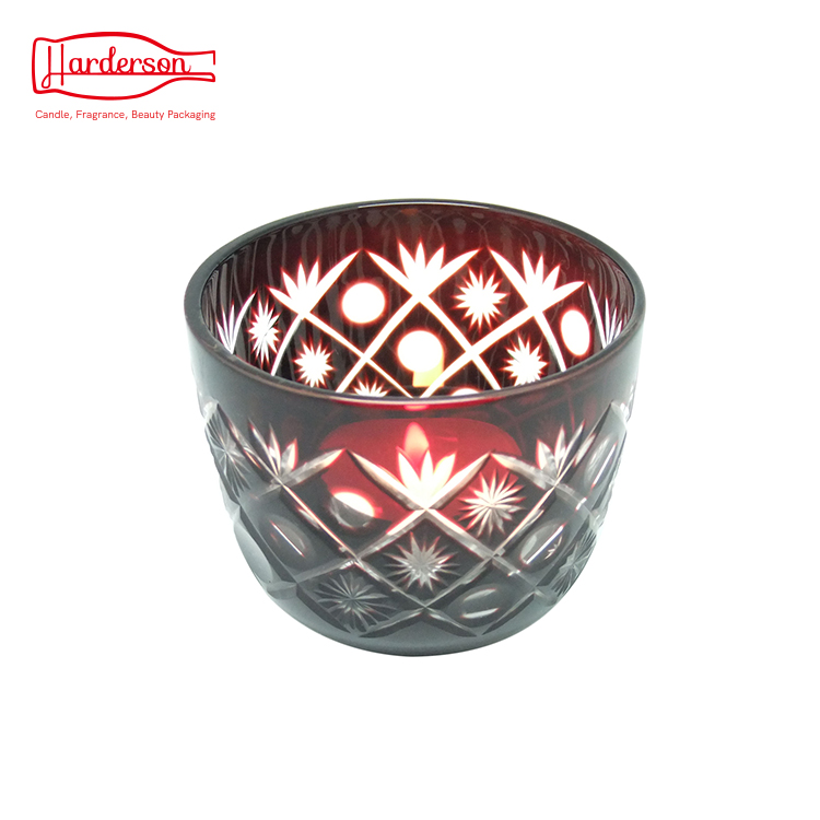 The high-end color powder glass candle holders is added purple powder of outside, the layer of inside is clear glass , you can see the pattern is dual-color after it’s engraved, everyone will love the craftsmanship quality of this exquisite glass candle jars,you can also use them as wax filled candle jars,it can be washed and reused when candles burn out, as a storage jar, It gives a nice, cozy and warm feeling.