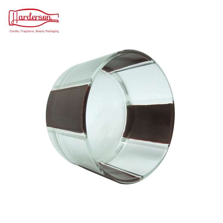 The high-end glass candle jar is engraved by hand with dark brown color spray, beautiful round glass candle jar with big diameter can be reused again and again, you can use them as wax filled candle jars, also can be as a storage jar.