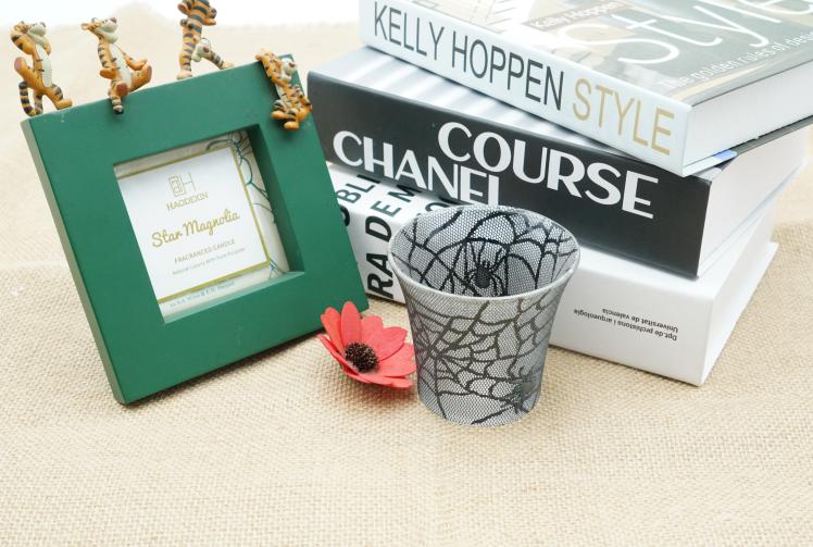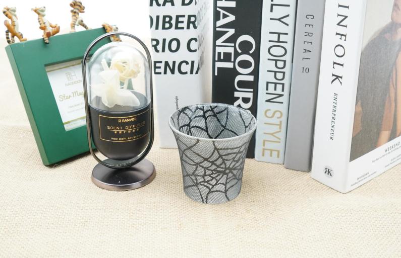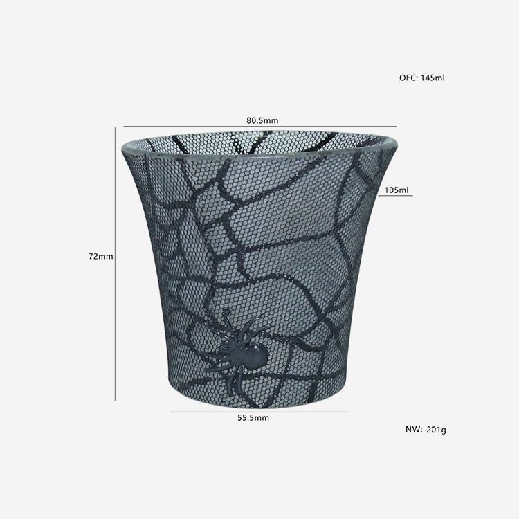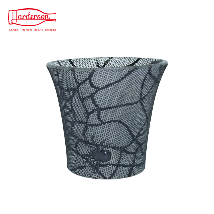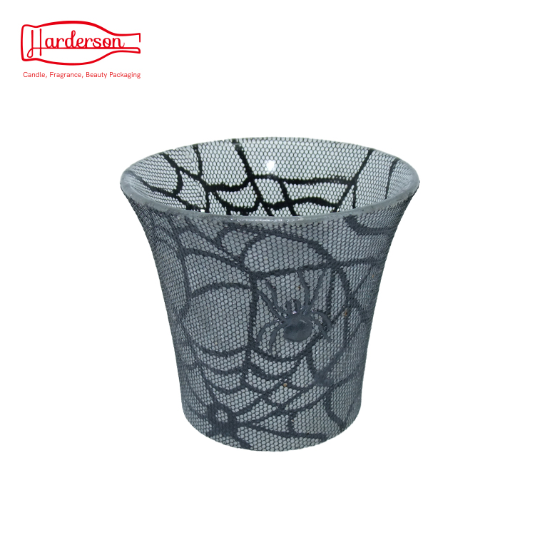 The spider web pattern glass candle jar is machine made, the spider web and spider is very original and unique, it is perfect to match industrial or country style house, you can use them as wax filled candle jars, it can be washed and reused when candles burn out, as a storage jar, It gives a nature, original ecology feeling.