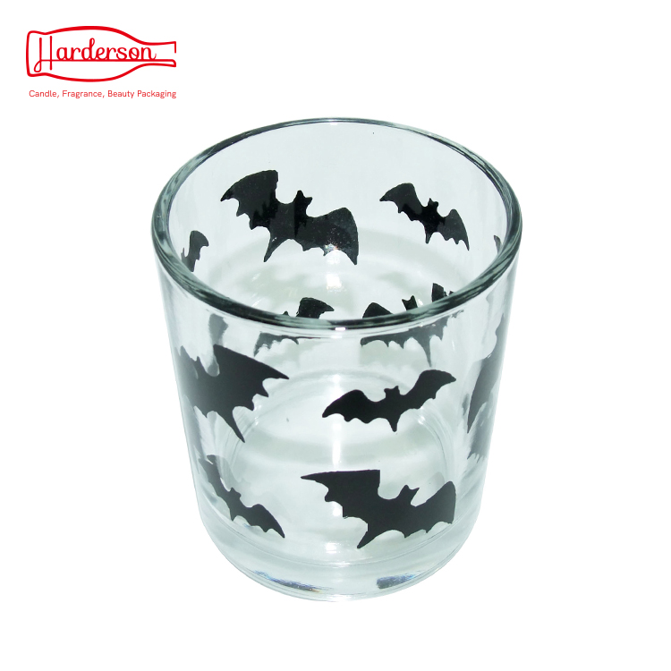 This luxurious round glass candle jar is by machine made with high-quality, modern style. Cute Halloween pattern, you can as it to be storage when it is used up, this luxury glass candle jar can add spice to your holiday or daily life, and enhance your life quality.