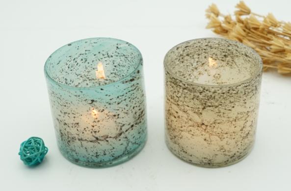 These luxury round glass jars are handmade, high-quality, bright and vivid. Natural colored dots are randomly distributed on the glass jars. The special patterns give people a feeling of peace and joy. It can better decorate your room and specially for meaningful events in your life. This luxury glass candle jar can warm your family and enhance your life quality.