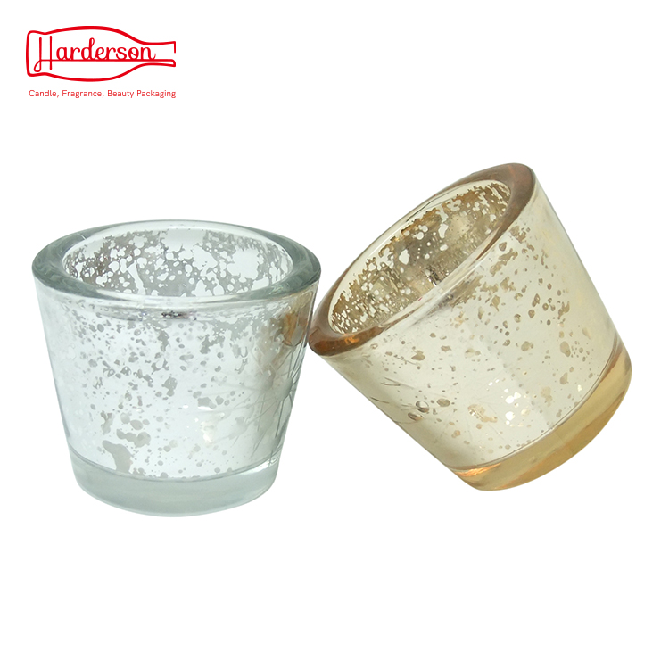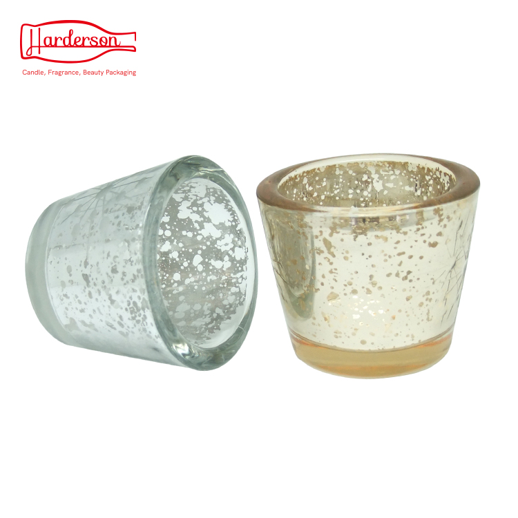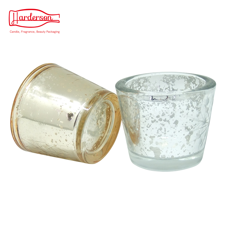 Special designed color spray with hand blast outside, hand cutting outside, mercury inside for the highest quality finish of votive candle holders. The machine pressed glass jars have special and beautiful flower style feature.
