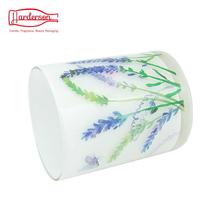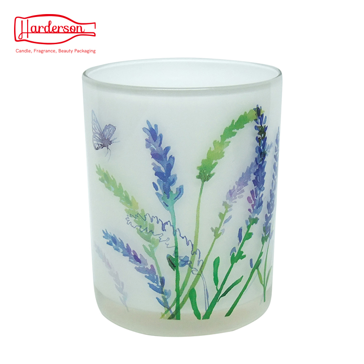 The machine pressed glass jars have an elegant thick glass rim. The simply glass candle jars are decorated with decal flower pattern outside. After, you have decorations all set with your candle jars, candle accessories, customize the private labels for your brand!