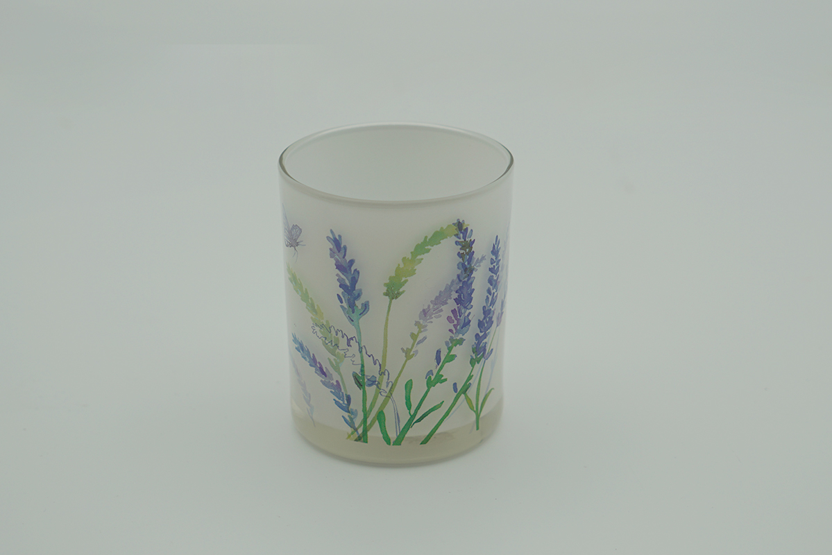 7oz Cylinder Glass Candle Jar with Decal Flower Pattern