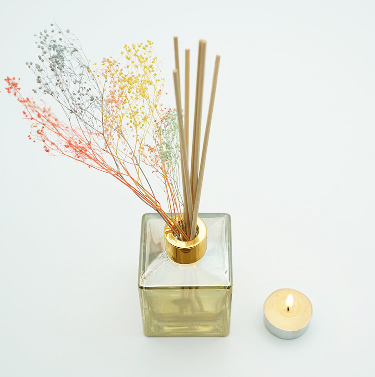 High quality glass diffuser bottles with luxury electroplated cap. Easy for using, packing safety. You can fulfill the essential oil directly into the square diffuser glass bottle. Classic shape- square size always popular using at home or car.