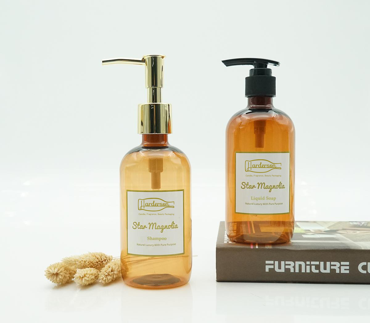 HARDERSON offers customized graphic design for PET bottle decorations and molding service for plastic bottles & pumps.