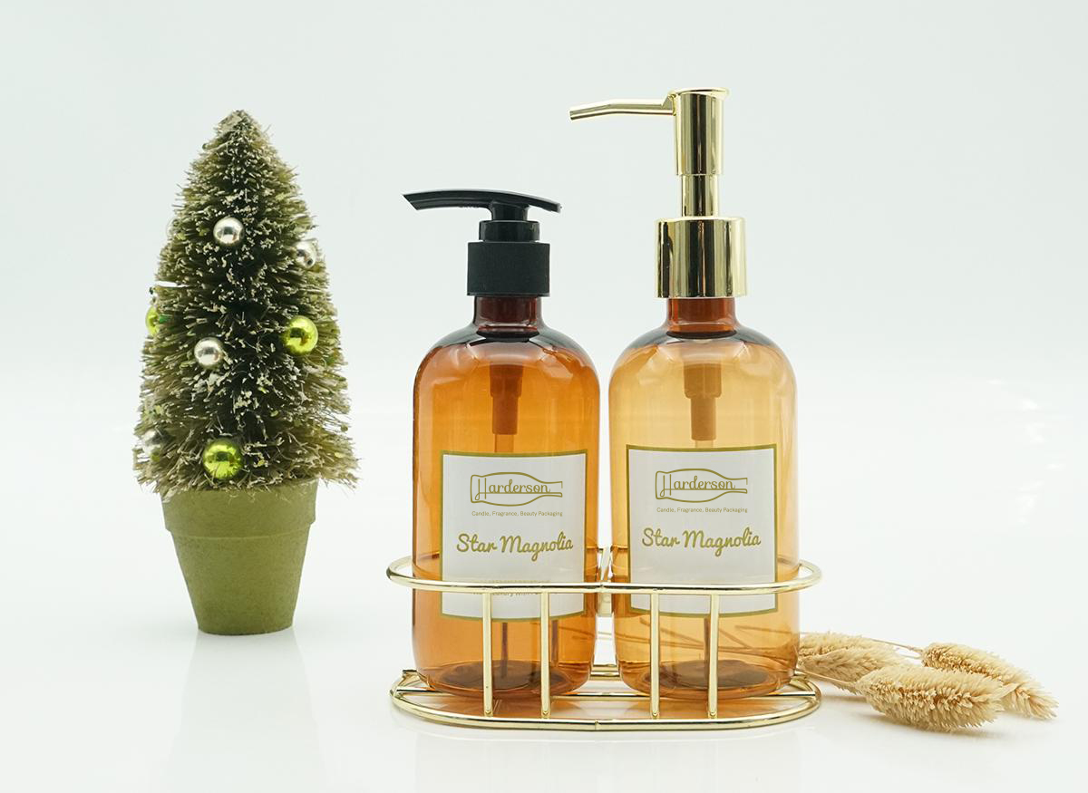 High-grade amber PET empty plastic bottles with UV gold pump and black lotion pump are lightweight and sturdy, it is great for travel, kids, and on the go.