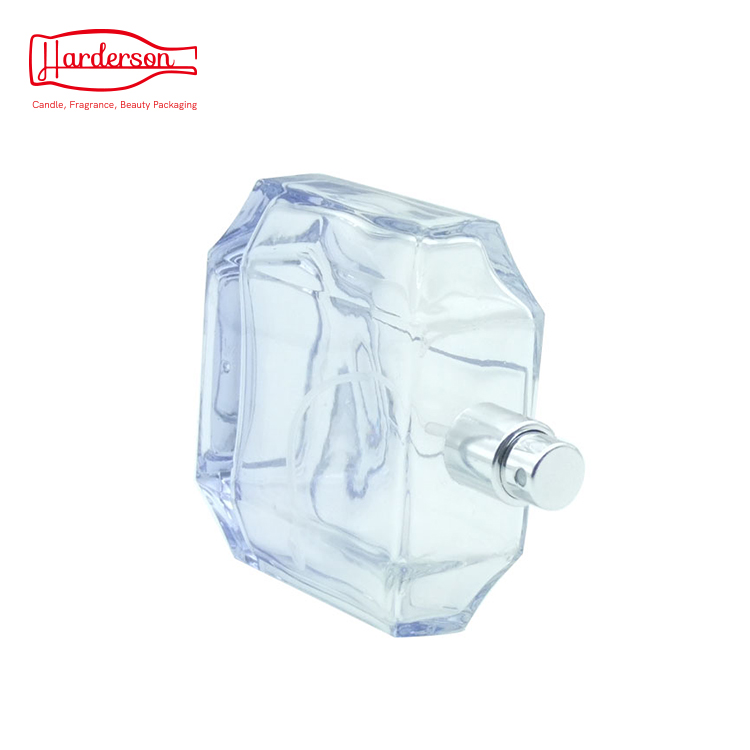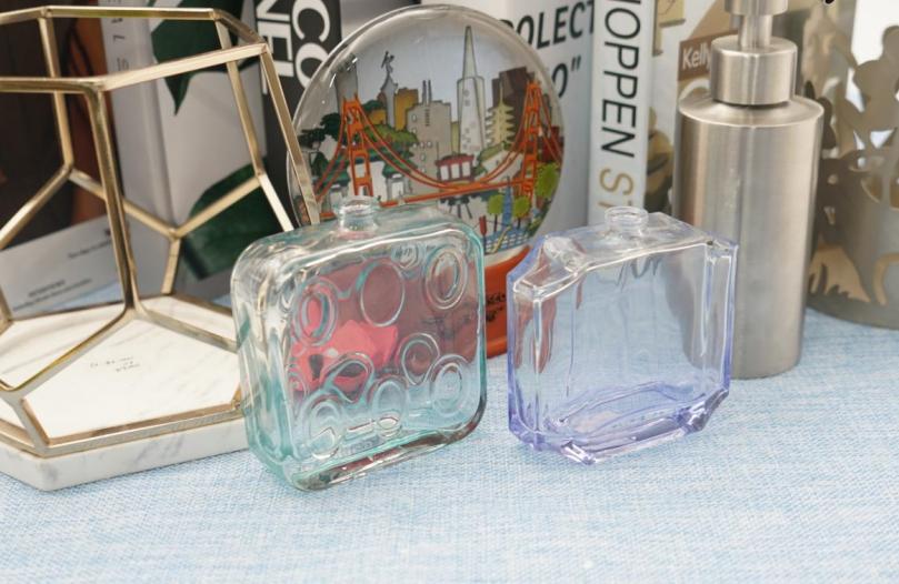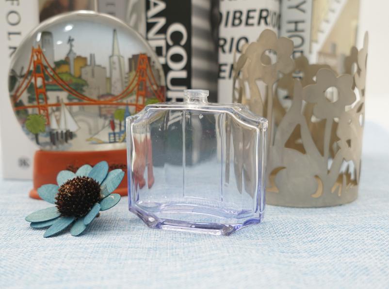 The high-end elegant glass perfume bottle is machine made with a single light blue color spray finish, beautiful special-shaped glass perfume bottle giving you feeling of freshness and creating a perfect mood when you use it every day.