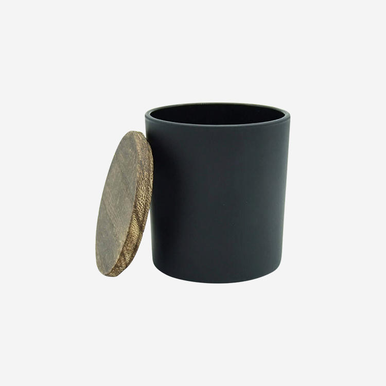 5.5oz-6oz Matte Black Glass Candle Jar with Wooden Lid