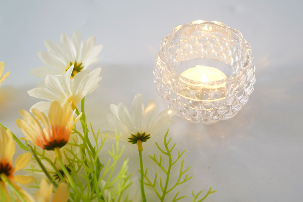 This is the thick wall and thick sham glass jars and tealight candle holders. Embossed pattern on the glass are specially designed for holiday home decoration.