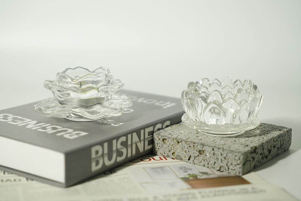 These are thick wall lotus shape glass jars and tealight candle holders. Embossed pattern on the glass are specially designed for holiday home decoration.