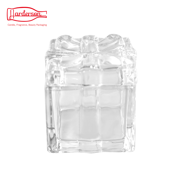 Wholesale Harderson Square Shaped with bow Glass Lids for Candle Jars