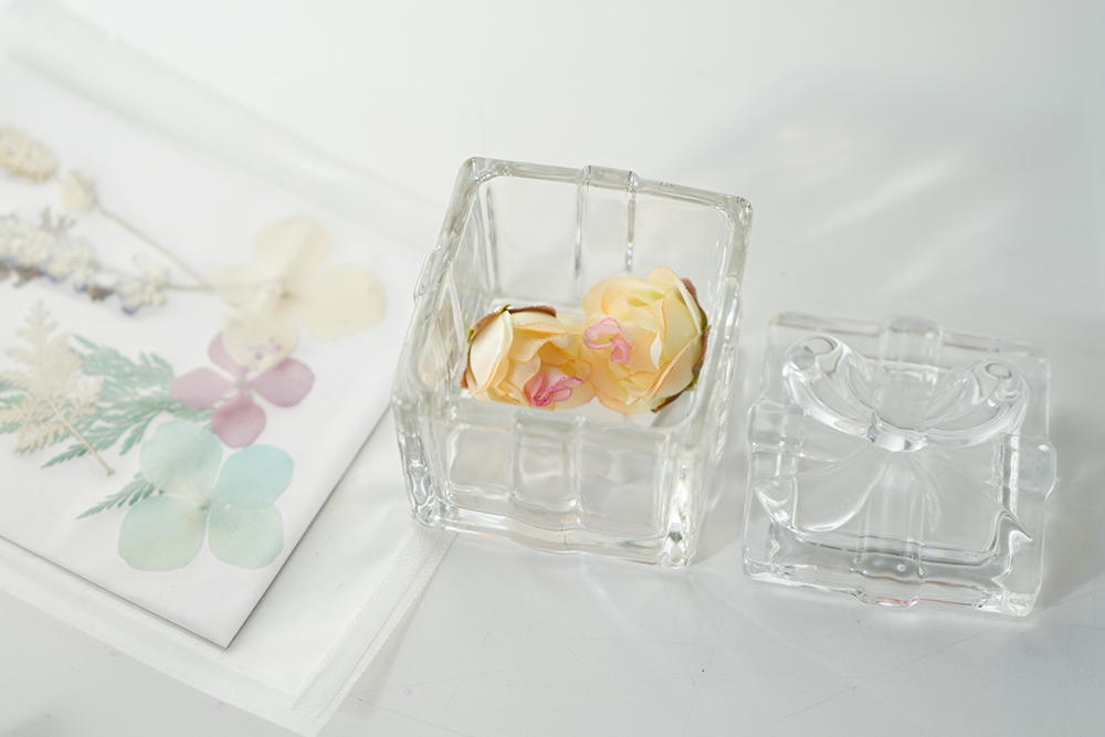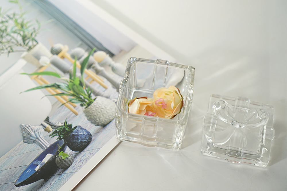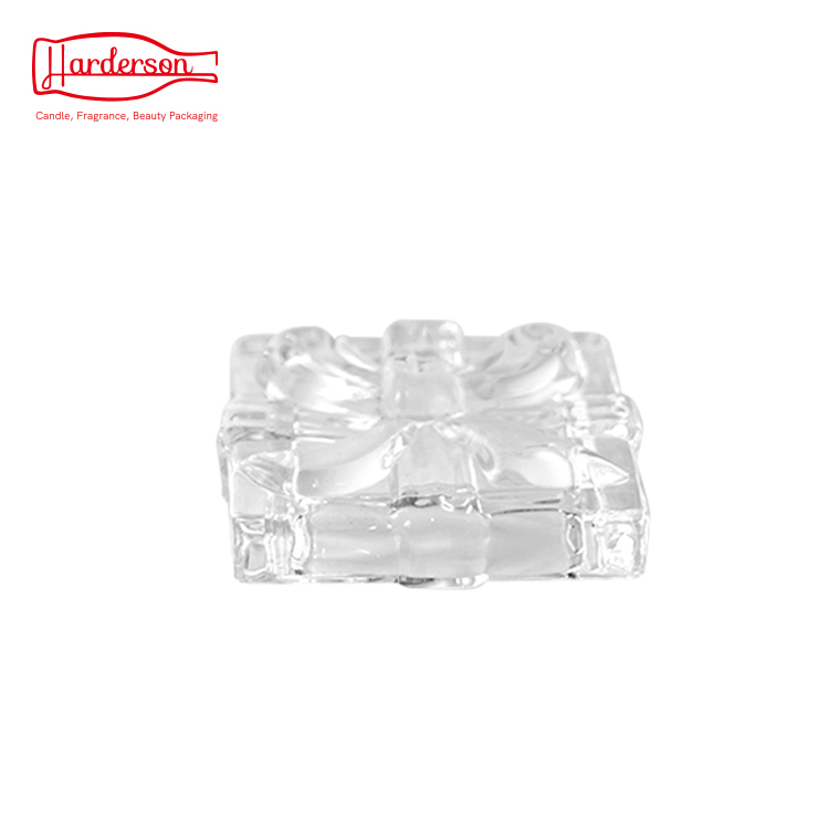 The lids are made of cost-effective glass. The lids with beautiful square shaped & bow, the lids are good suitable to use for valentine’s day, ceremony, party or other places. Clear glass lids that are used as candle glass jars or storage glass jars, they’re OK to customize with color spray, electroplating, silk screen etc decoration base on customer’s requirement. The lid is a decorative glass cover for your candle jars, storage jars, beauty containers etc.