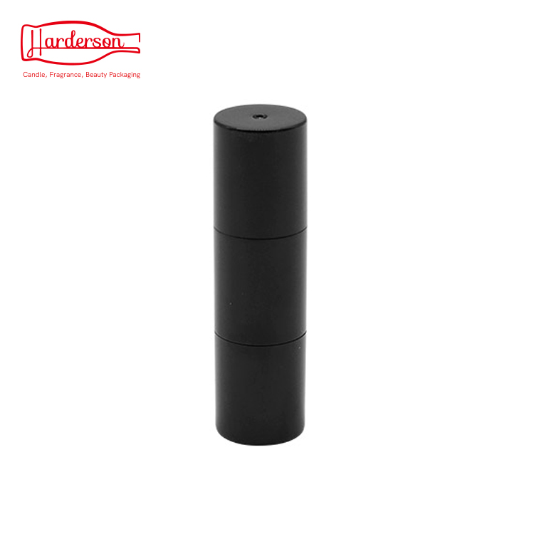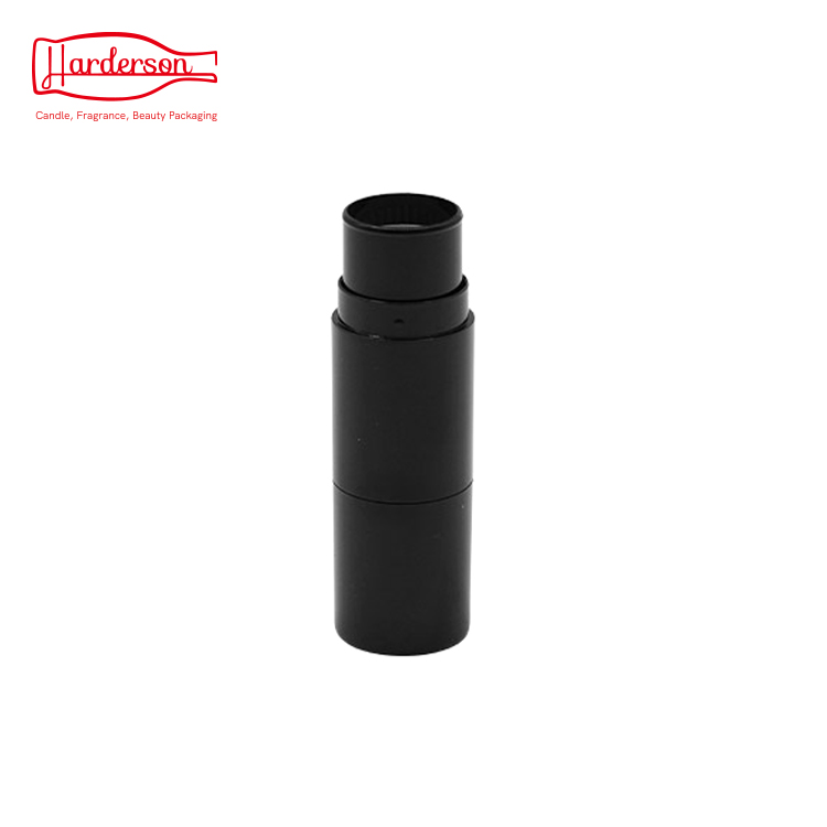 Wholesale Harderson high quality cylinder matte black two-color injection recycled plastic cosmetic makeup packaging with 3D embossed & silk screen printing and crackle finish for lipstick