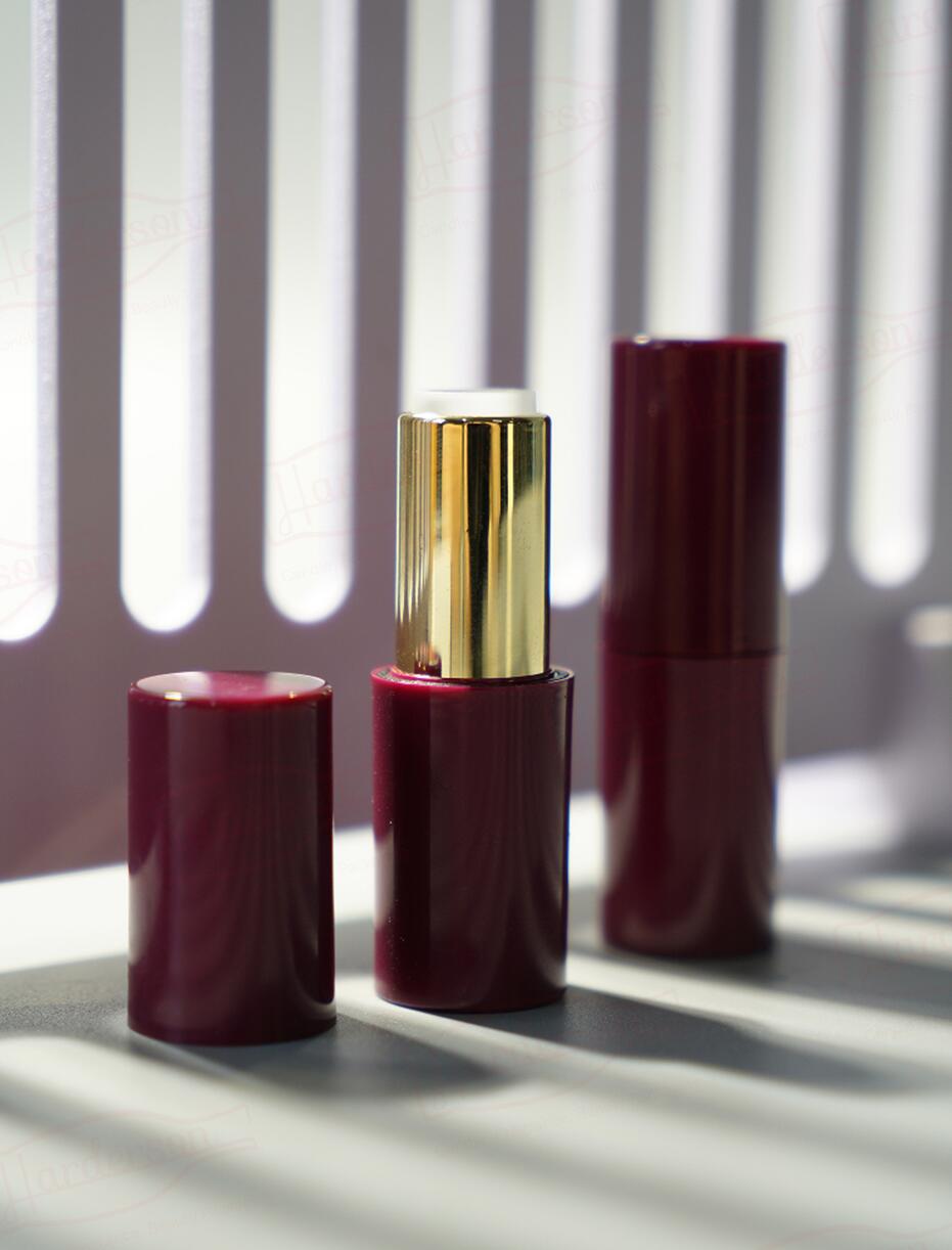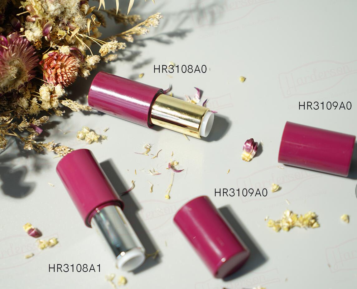 Wholesale Harderson high quality cylinder two-color injection recycled plastic cosmetic makeup packaging with metallic shinning finish & hot stamping for lipstick