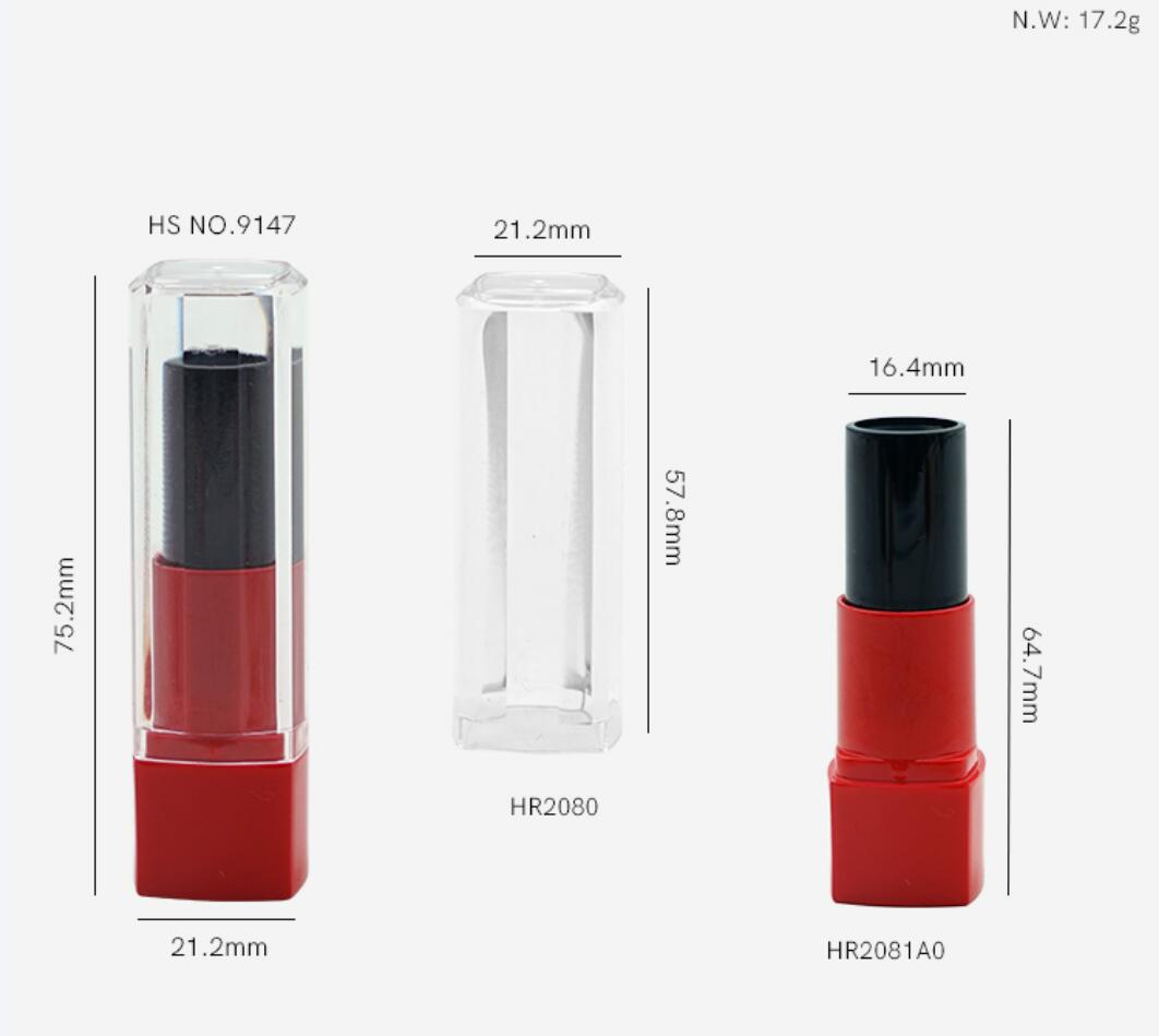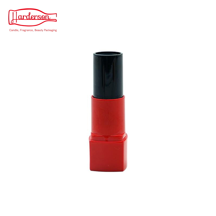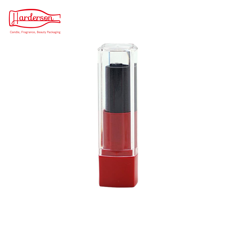 Wholesale Harderson high quality square shape recycled color injection in gloss red & gloss black plastic cosmetic makeup packaging with clear cap for lipstick