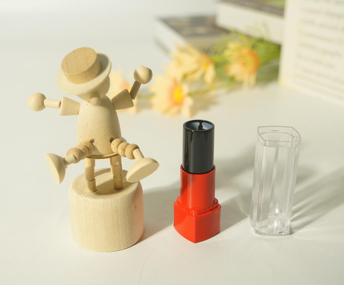 The recycled plastic lipstick tube is applying with color injection in gloss red & gloss black, square shape body with clear cap design which is easy to show the appearance/identity the color of the lipstick for daily use. Flat mouth design with good grip and soft hand touch. It’s a must-have cosmetic makeup product for a beauty bag.