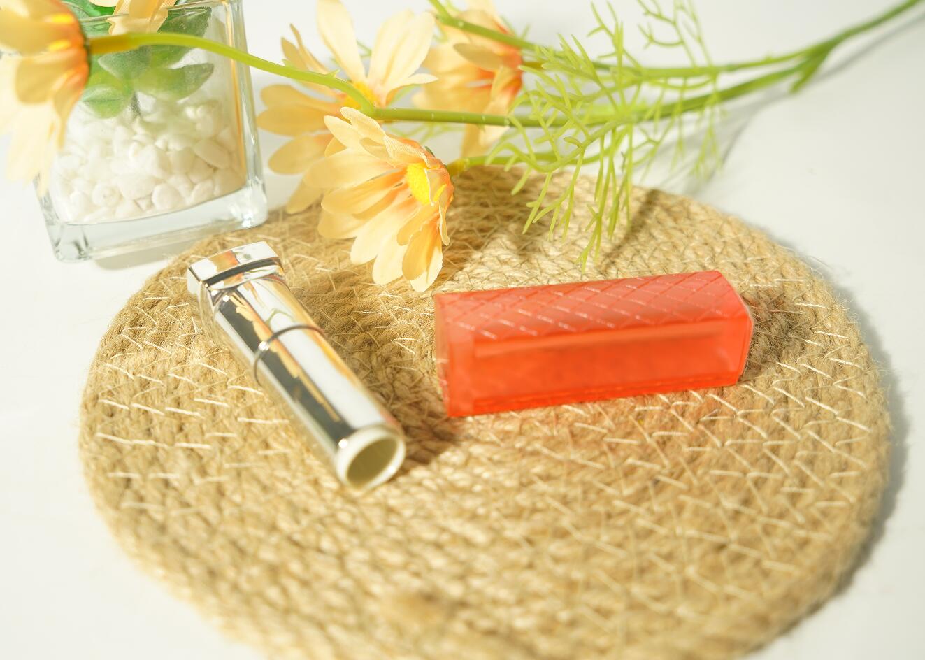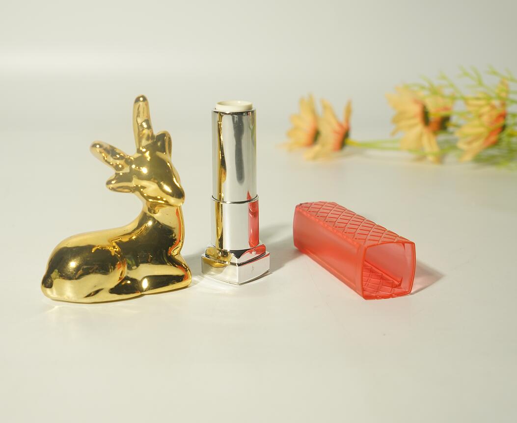 The lipstick tube is in square shape body with semi transparent cap design with diamond pattern which is special, flat mouth design with good grip and soft hand touch. It’s a must-have cosmetic makeup product for a beauty bag.