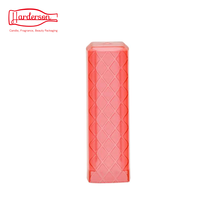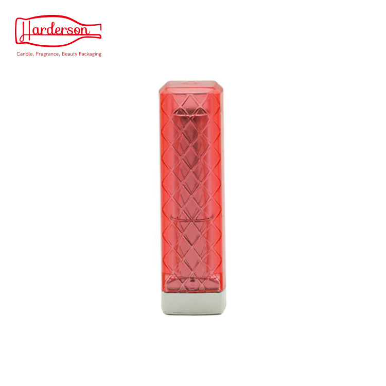 Wholesale Harderson high quality square shape recycled silver electroplating finish plastic cosmetic makeup packaging with semi transparent cap in pink & diamond patterns for lipstick