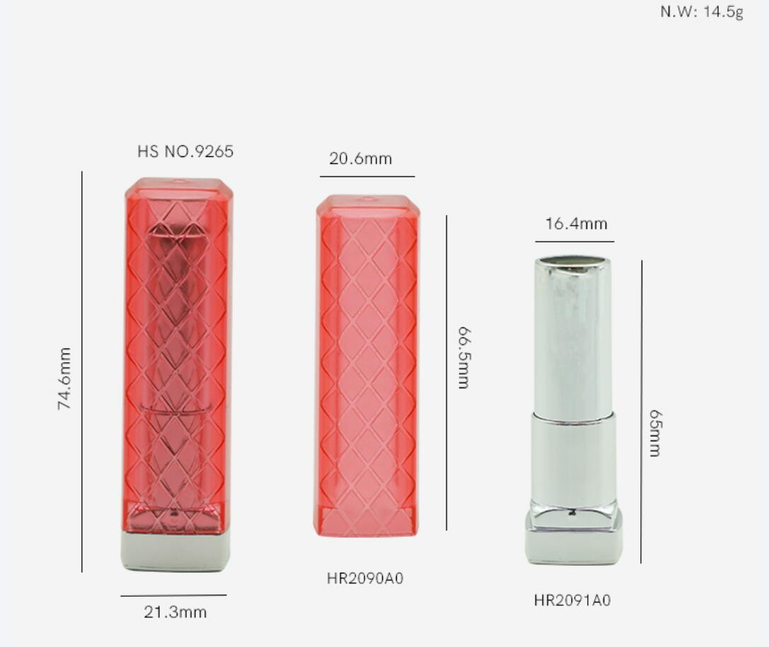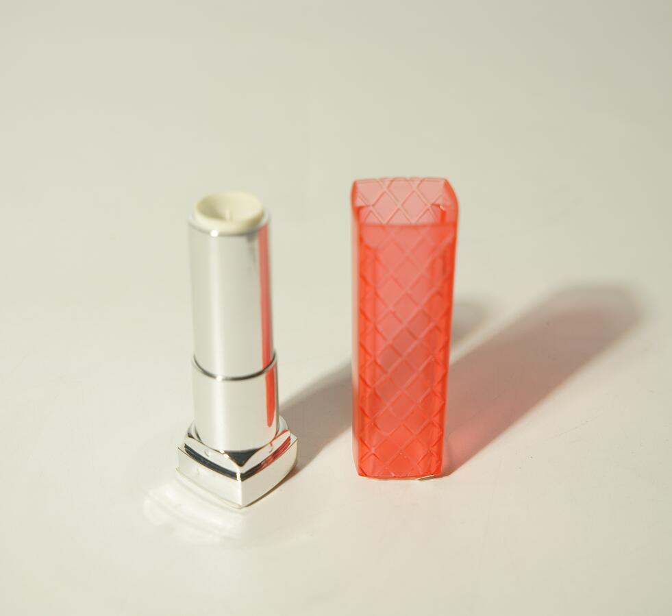 The recycled plastic lipstick tube is applying with electroplating finish in silver, square shape body with semi transparent cap in pink & diamond pattern which is special. Flat mouth design with good grip and soft hand touch. It’s a must-have cosmetic makeup product for a beauty bag.
