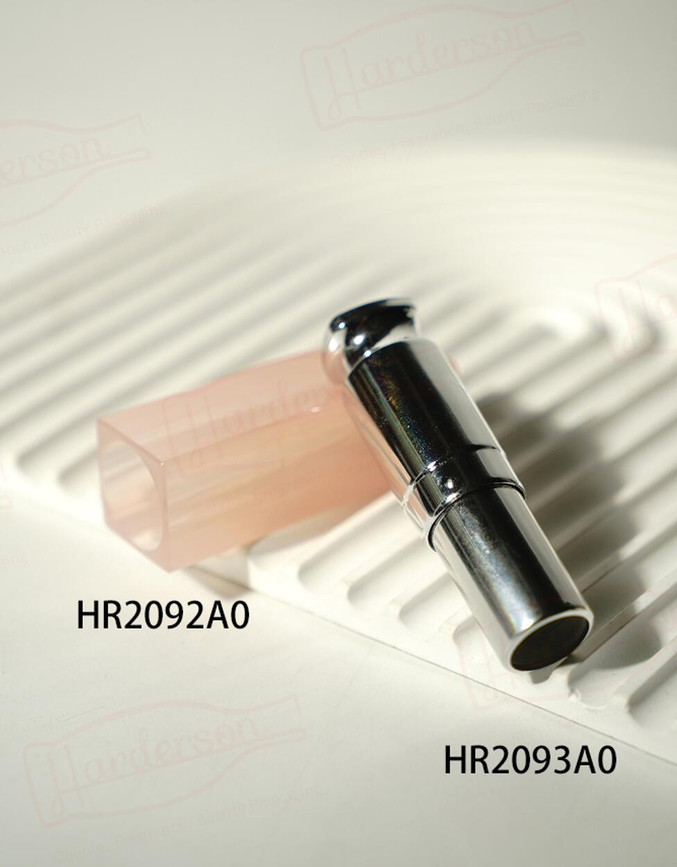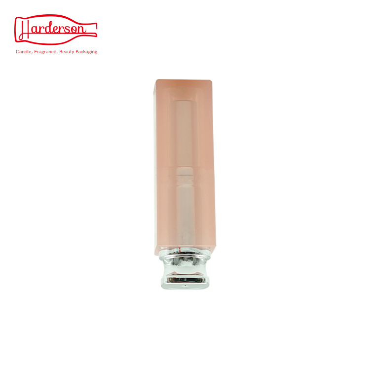 Wholesale Harderson high quality recycled plastic cosmetic makeup packaging in silver electroplating finish with square shape semi transparent cap in pink for lipstick