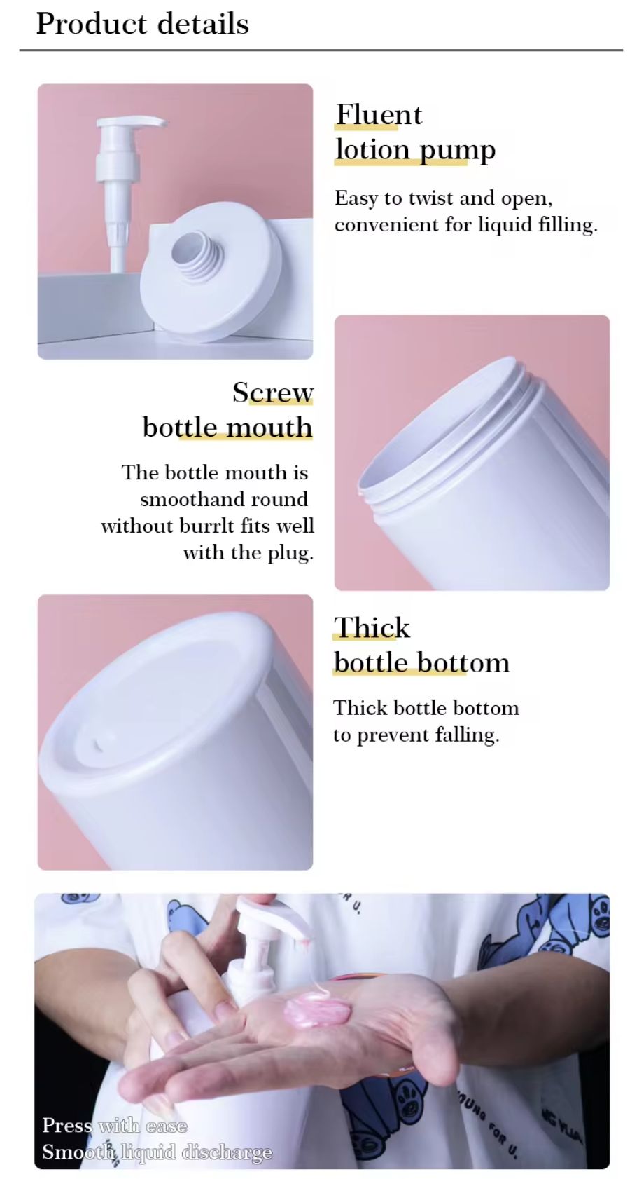 Wholesale Harderson 300 500 1000ml lotion pump bottle for liquid body wash 16oz clear white PET plastic shampoo bottles.