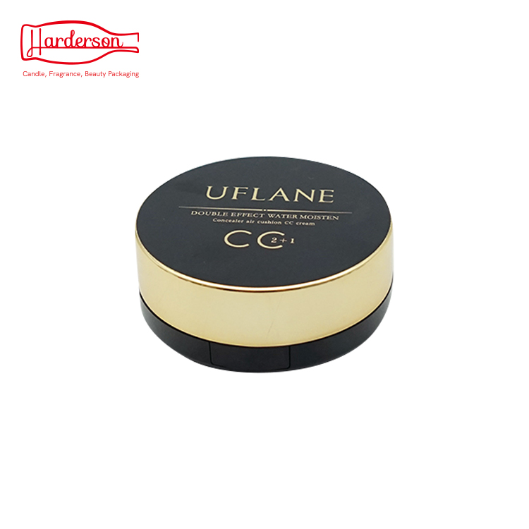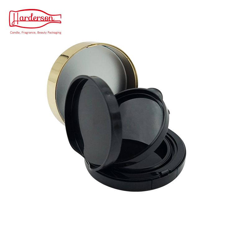 Wholesale Harderson empty 3layers black injection plastic cosmetic compact packaging with hot stamping logo for bb cushion powder case