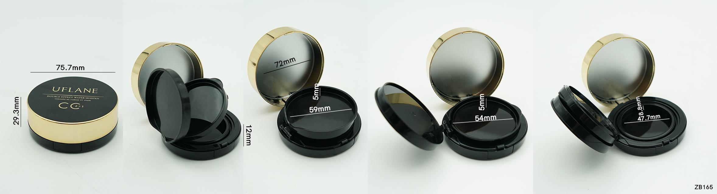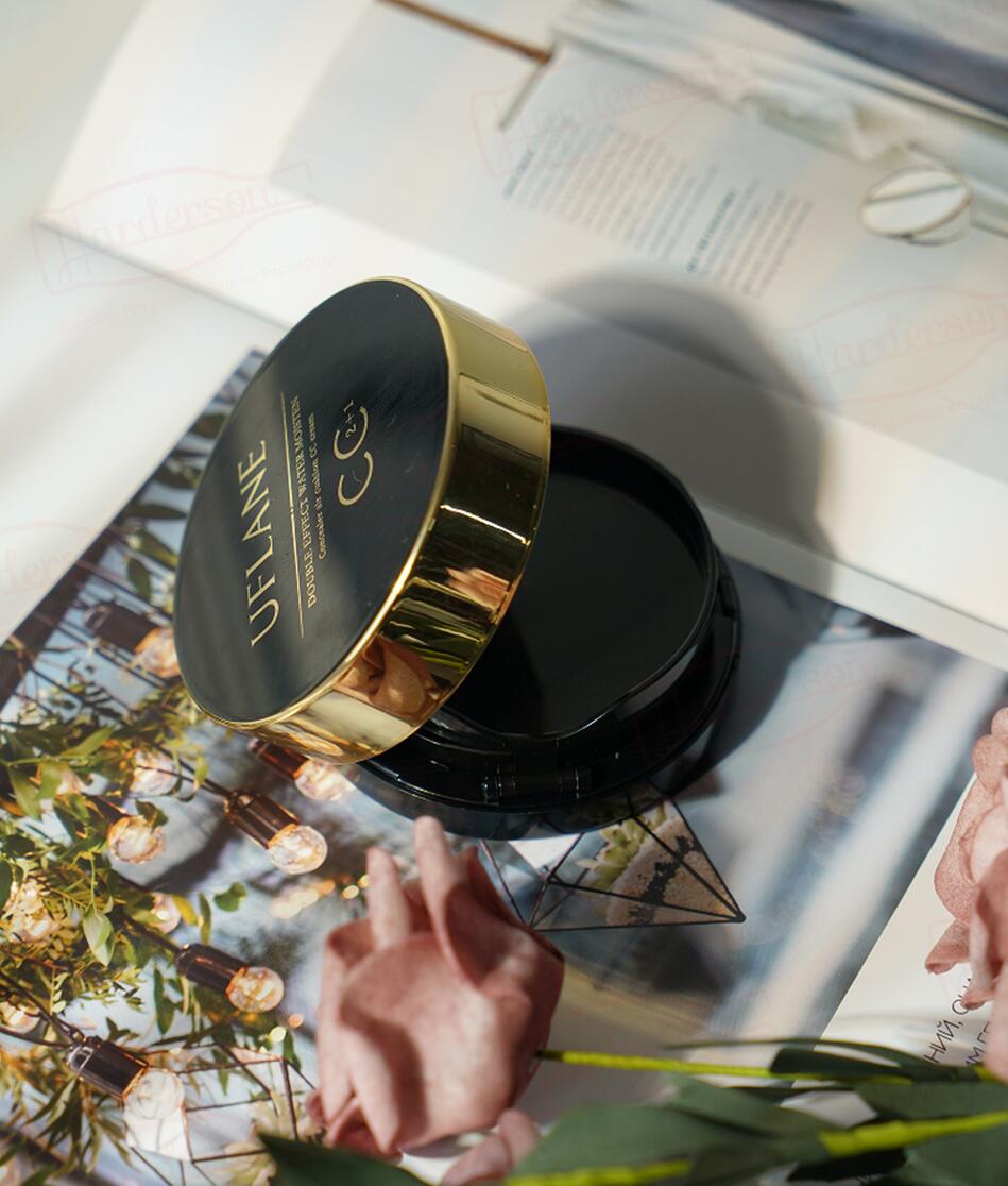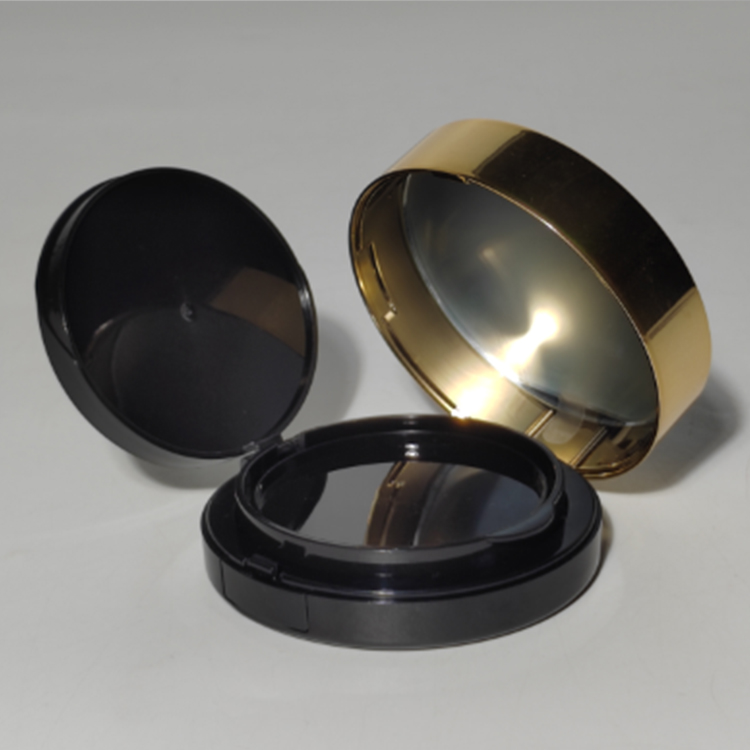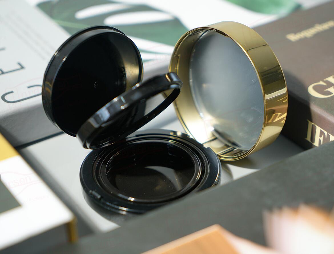 The recycled plastic makeup packaging is applying with color injection and hot stamping logo at the cover + electroplating finishing in gold at the frame stripe which highlight extravagant quality, custom service is acceptable. Cylinder shape, mirror design + 3layers with inner refills for compact and middle holder for cushion which are convenient for daily use. It’s a must-have cosmetic makeup product for a beauty bag.