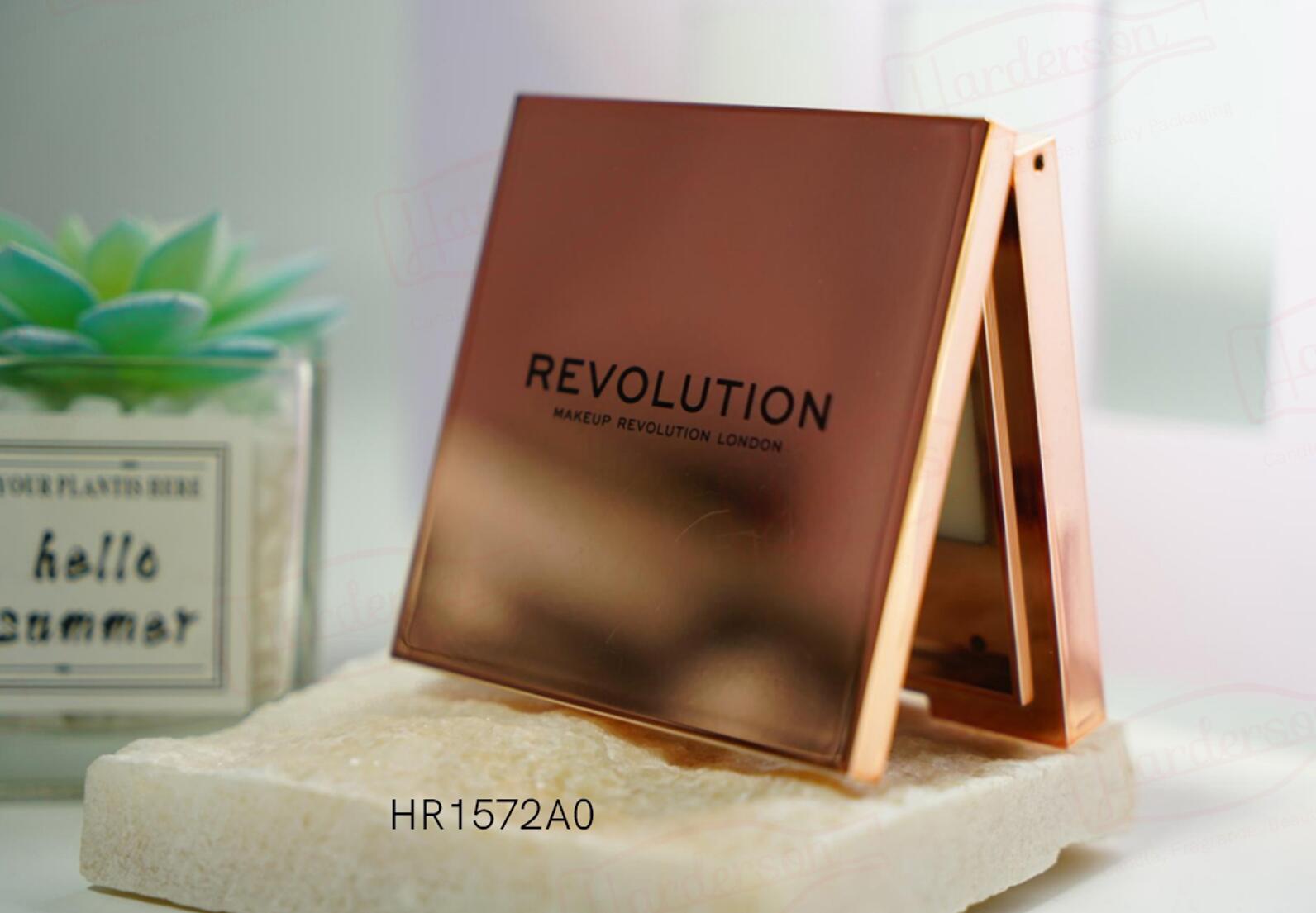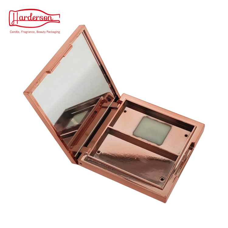 Wholesale Harderson high quality square electroplating rose gold recycled plastic cosmetic makeup packaging with mirror & silk screen printing logo for pressed powder compact