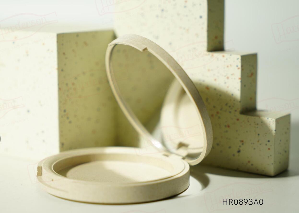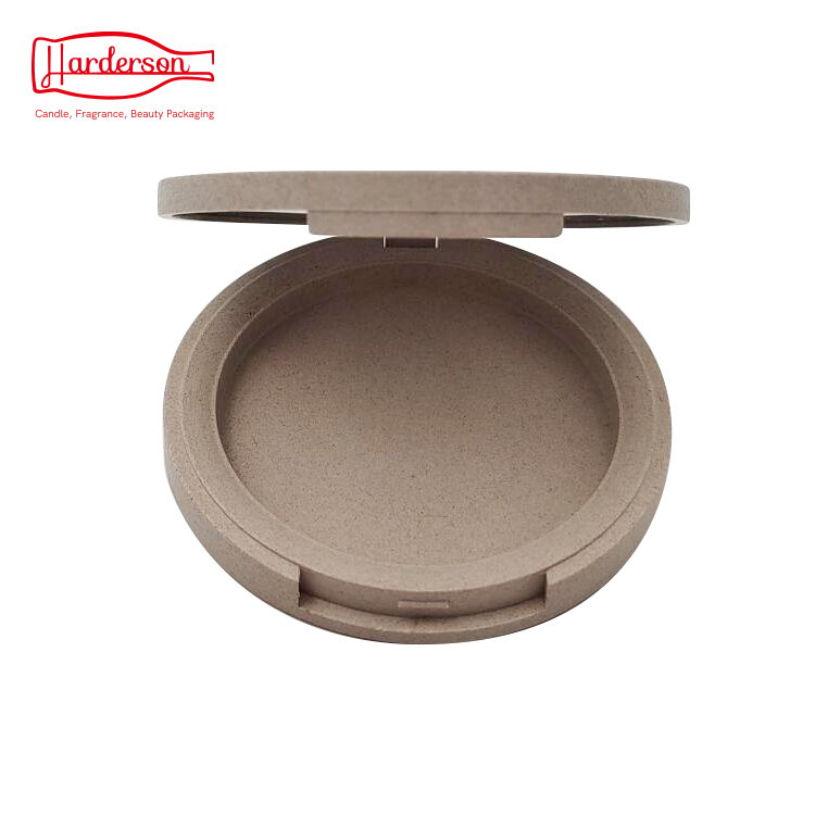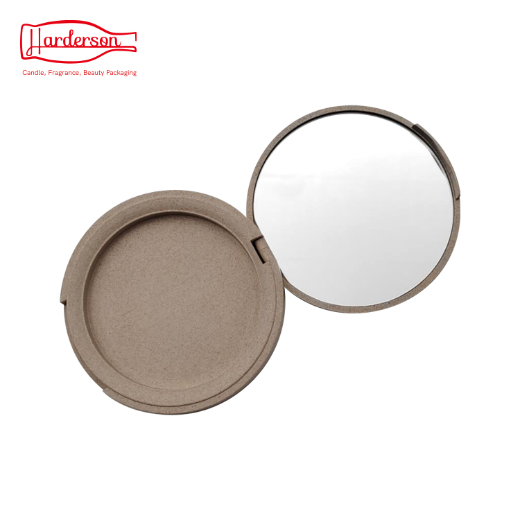 Wholesale Harderson high quality round shape wheat straw recycled plastic cosmetic makeup packaging with mirror for pressed powder compact
