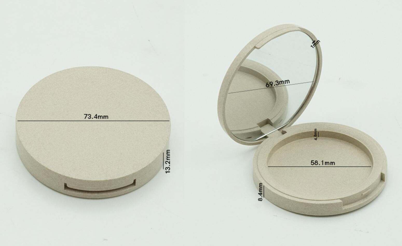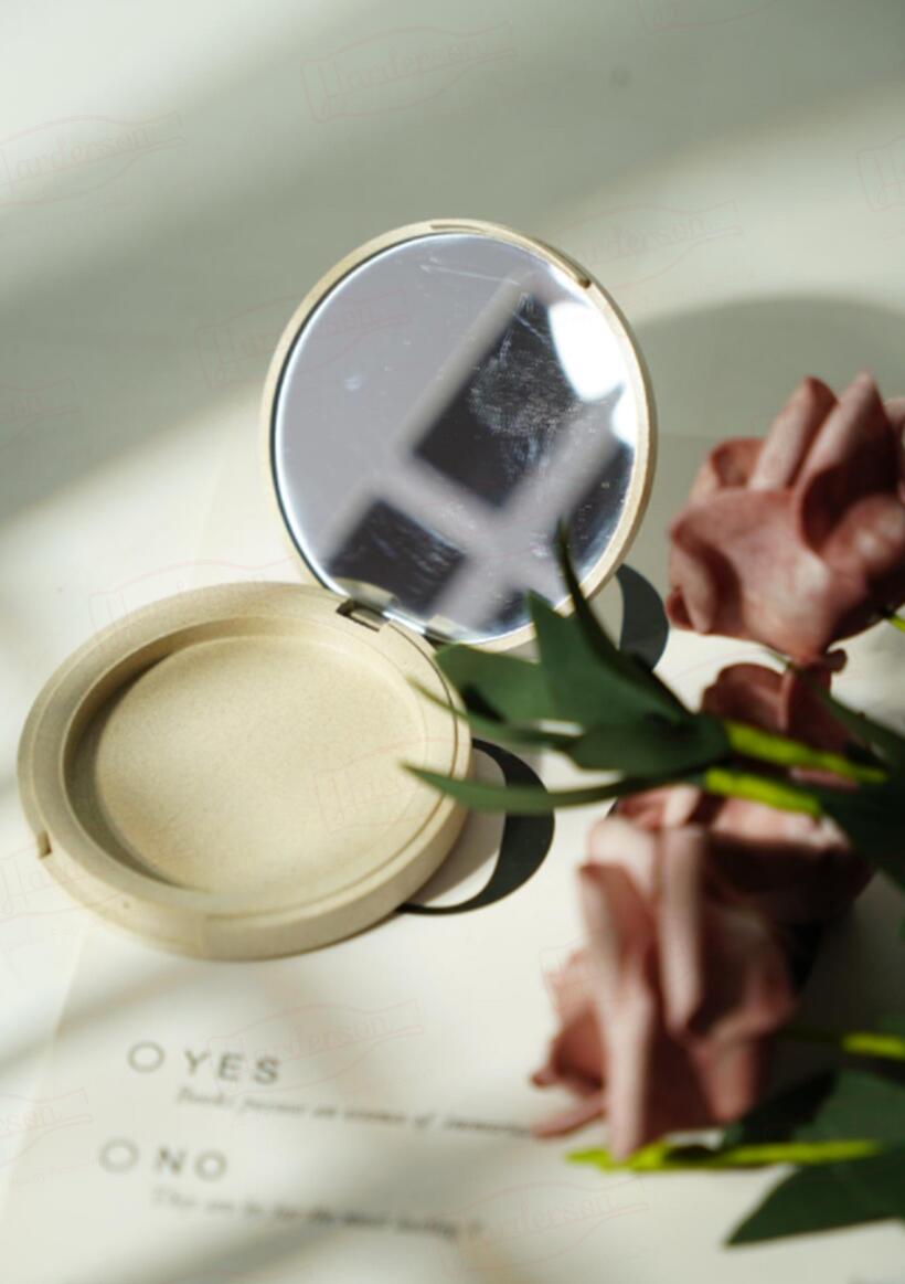The plastic makeup packaging is applying with wheat straw plastic which is Eco-friendly & biodegradable. Round shape, snap button sealing construction + mirror design which is convenient for daily use. It’s a must-have cosmetic makeup product for a beauty bag.