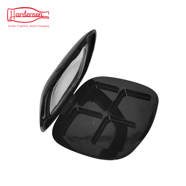 Wholesale Harderson 4colors square black color injection plastic cosmetic makeup packaging with window roof design for eye shadow palette or powder blush