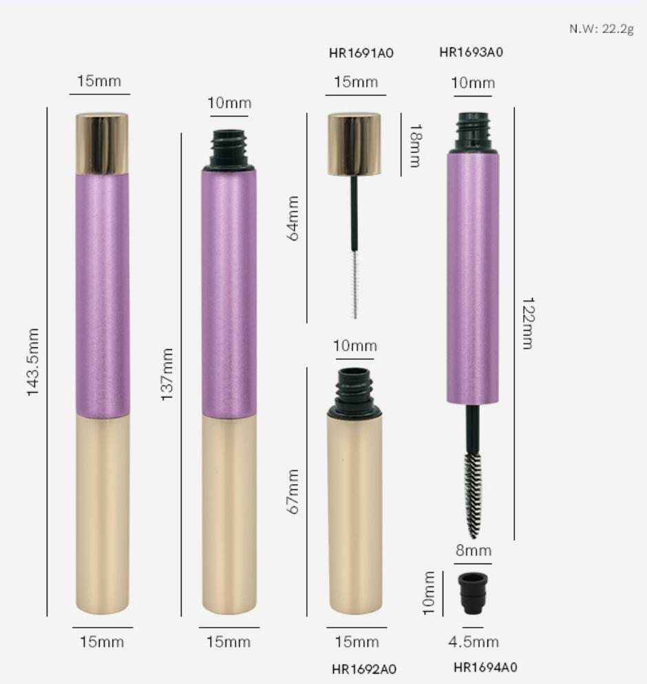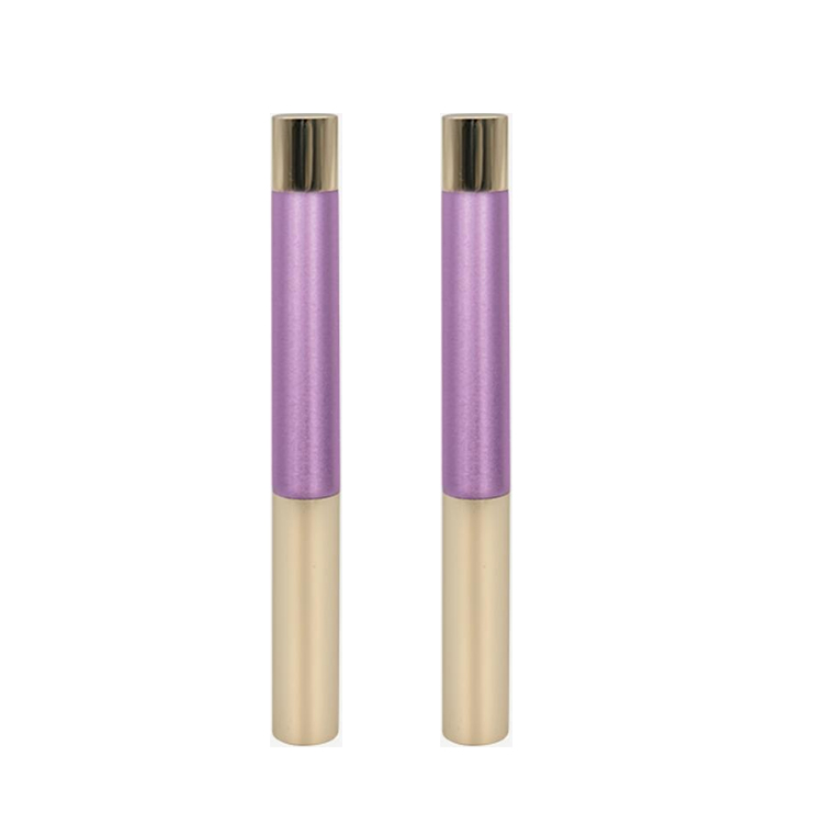 The plastic makeup packaging is applying with metallic spraying in purple & electroplating in light gold finish and silk screen priting logo which is luxury. Round shape, good texture. Double-brush-headed design which can meet different needs. Breakthrough Lash Extending brush has a curved side to lengthen and curl lashes. Flat side to build up baby lashes. Humanized anti-slip handle/cap & leak-proof plug design highlight extravagant quality. It is convenient for daily use.