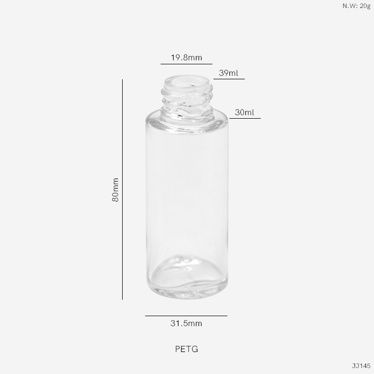 PETG thick wall material which the quality is good. Cylinder shape body in mini size which is portable and easy for daily use. It’s a good packaging soluction for the skincare, cosmetic, personal care products.