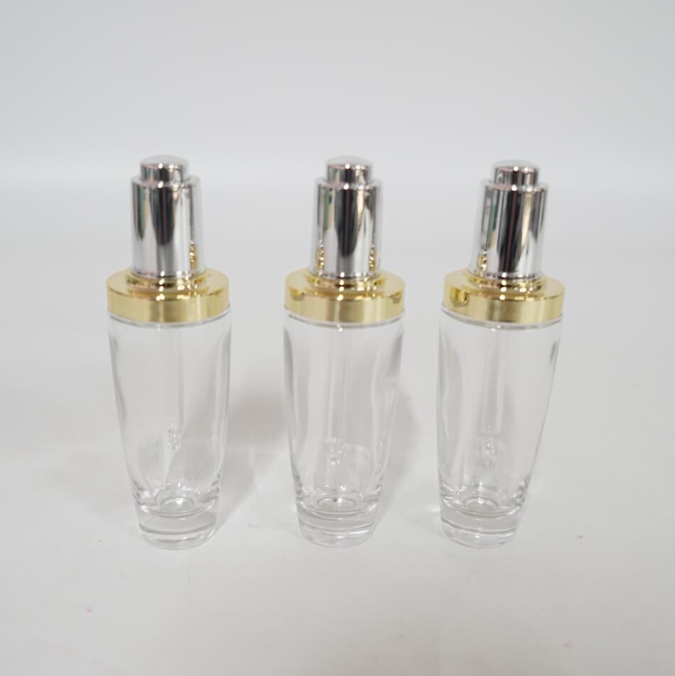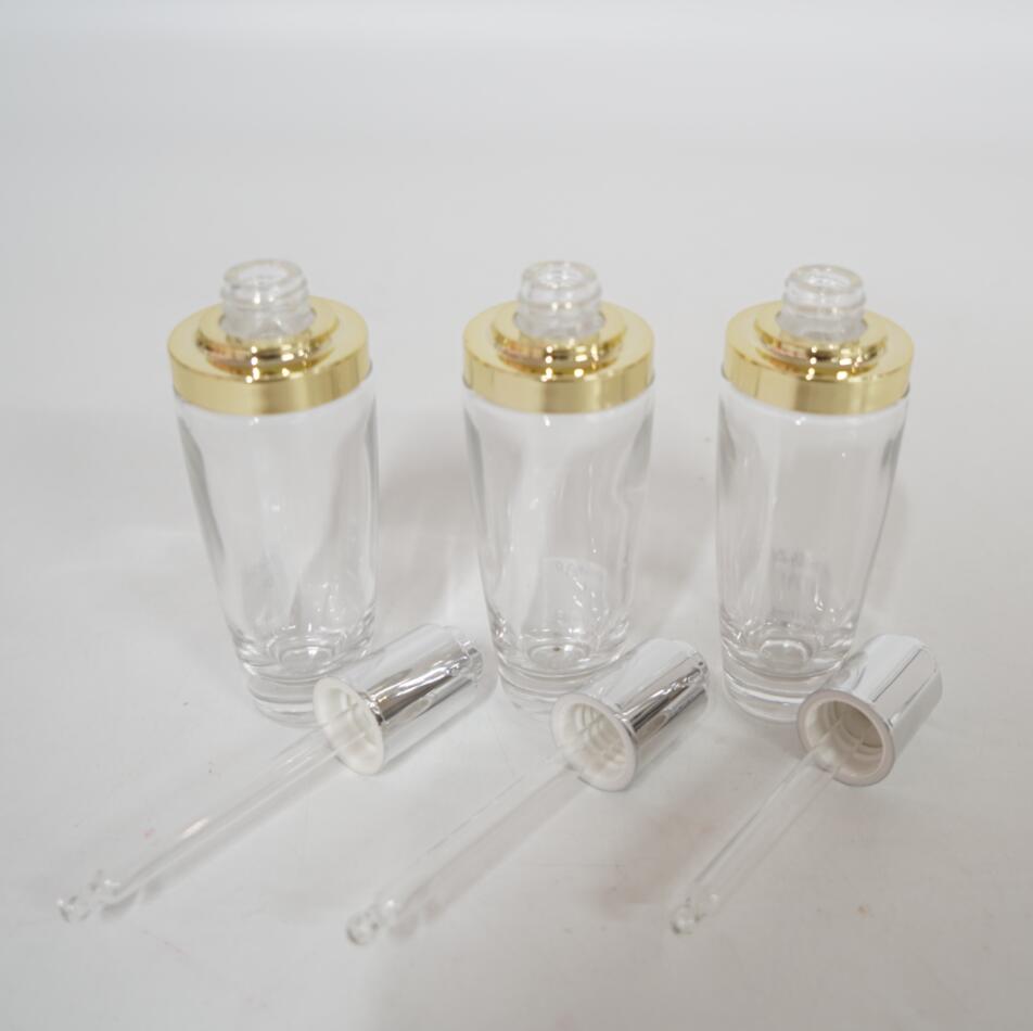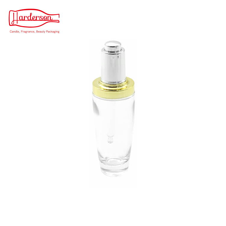 Wholesale Harderson high quality 50ml glass cosmetic bottle with gold shoulder holster & silver dropper for essential oil serum