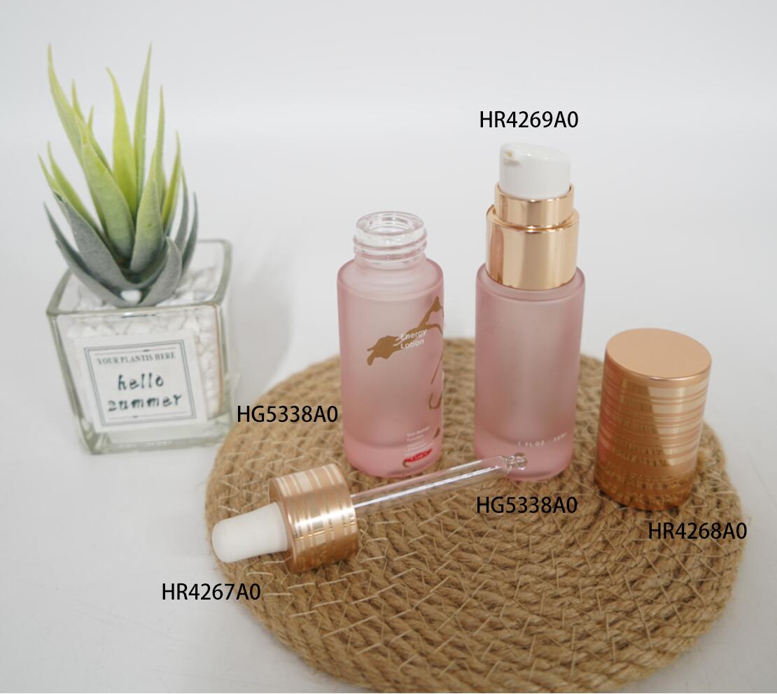 The glass bottle is applying with gold dropper or pump with cap decored with stripe patterns which makes the appearance so luxury. It can apply with different closures for different functions.