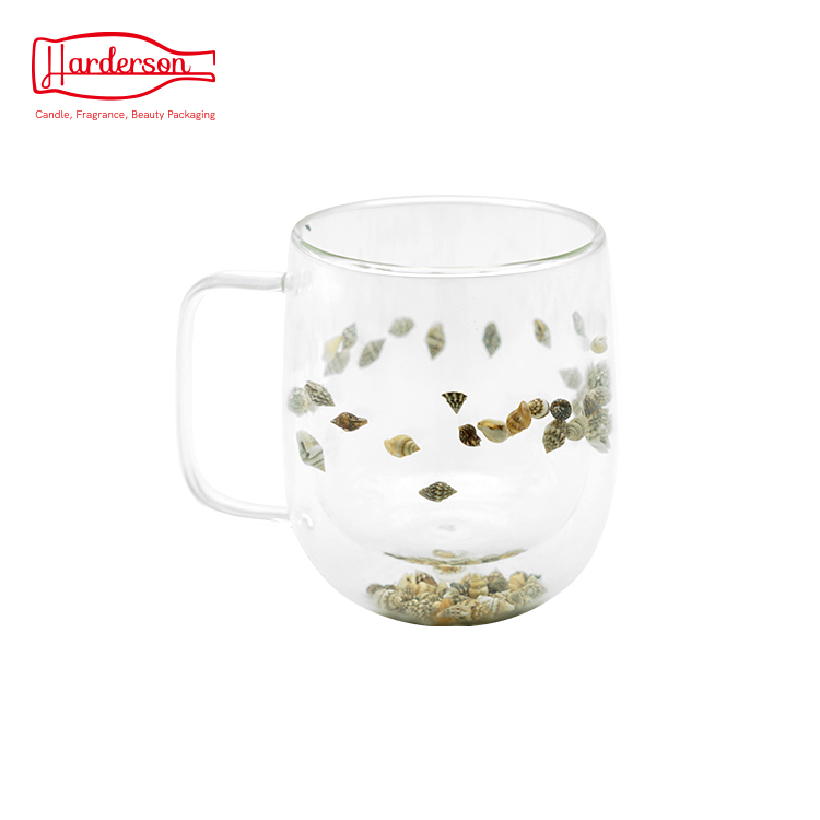 Harderson Wholesale 320 ml Dried Flower and Mini Seashell Glass Water Cup and Candle Holder Candle Jar For Home And Office